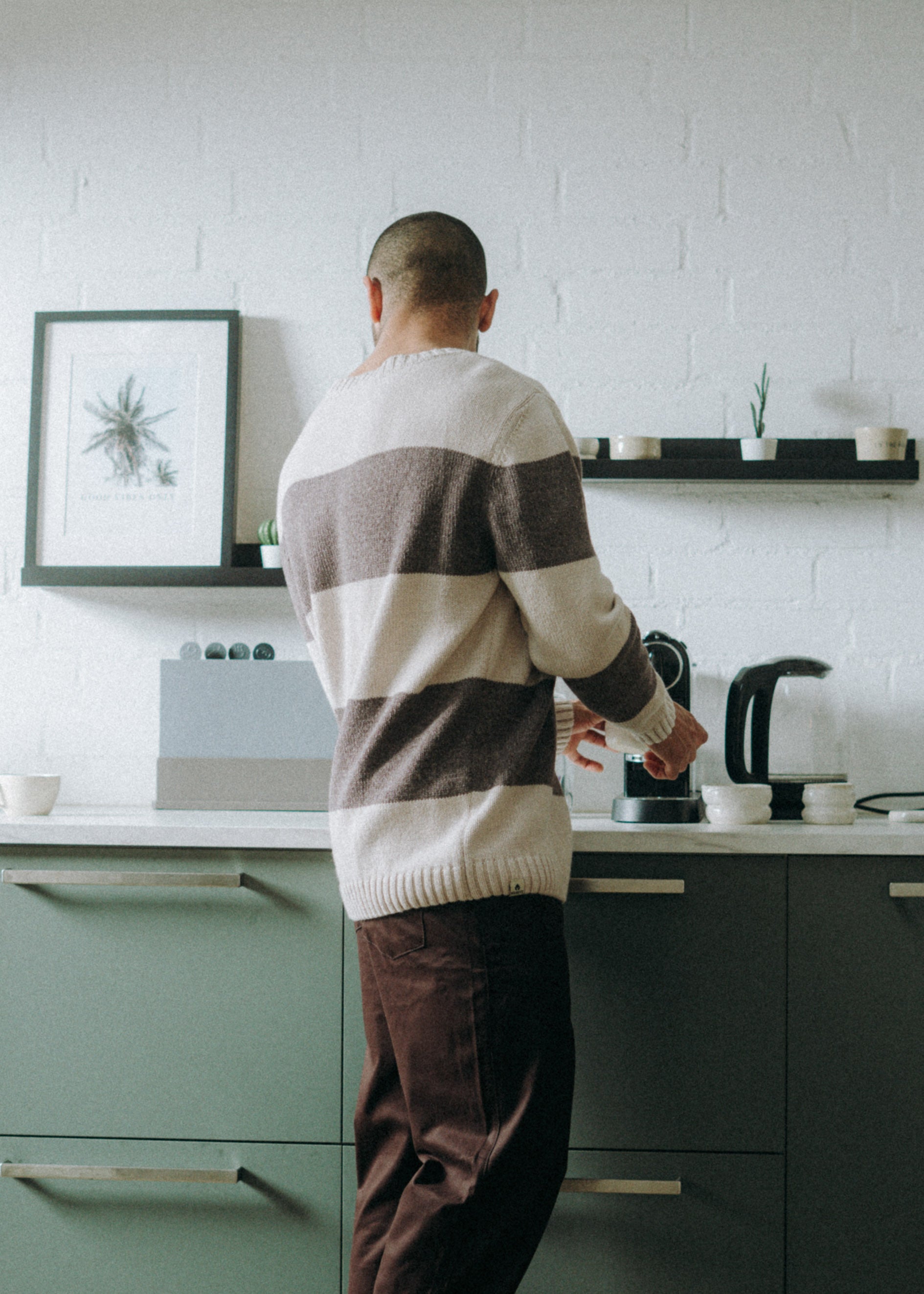 Ob einfarbig clean oder mit markanten Blockstreifen, RIFFELT bleibt immer stilsicher, ohne aufdringlich zu sein. Ein Pullover, der sich Deinem Alltag anpasst: zum Beispiel über einem T-Shirt für den Spaziergang am Hafen, unter der Jacke für den Weg ins Büro oder solo für entspannte Abende zu Hause.