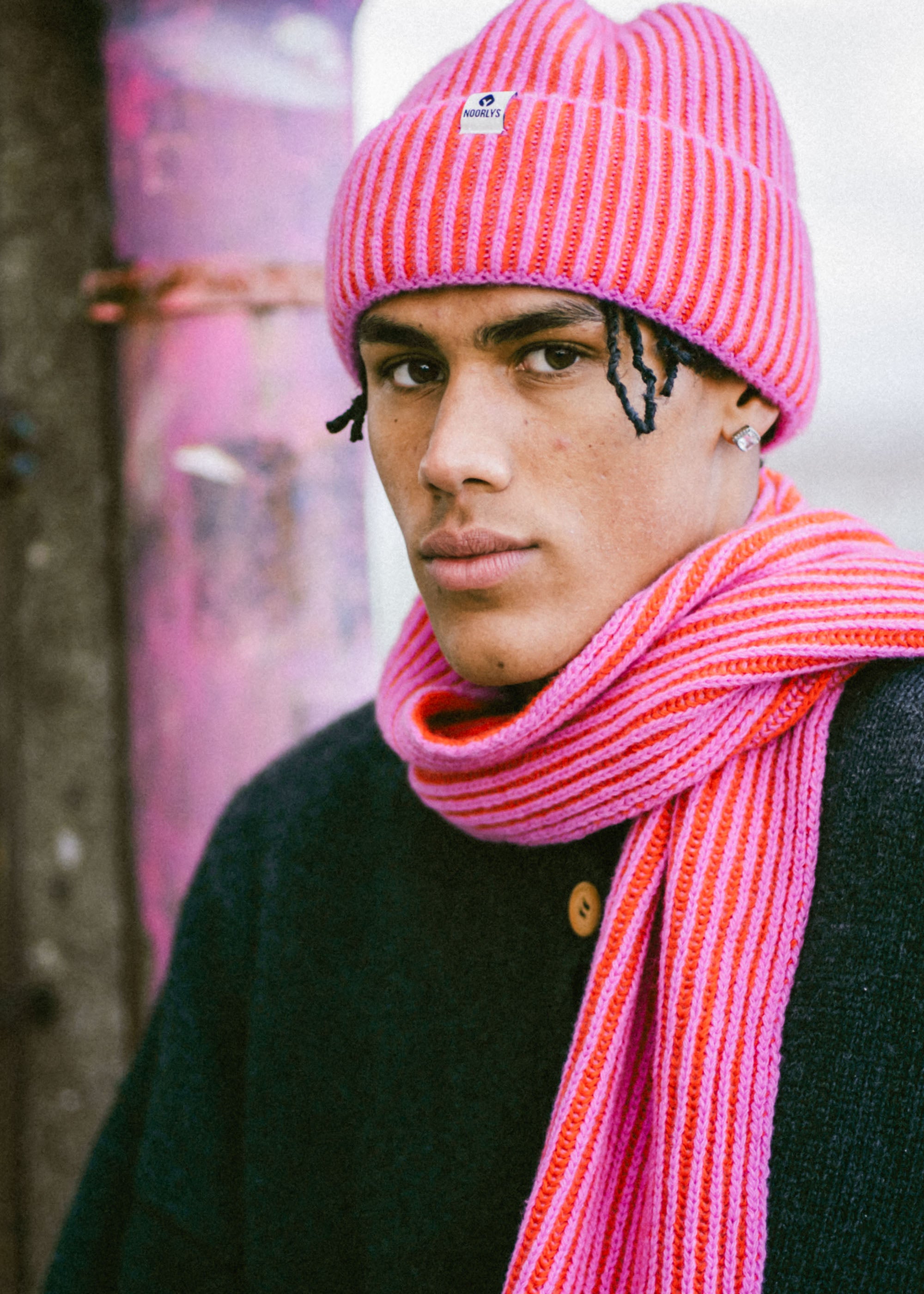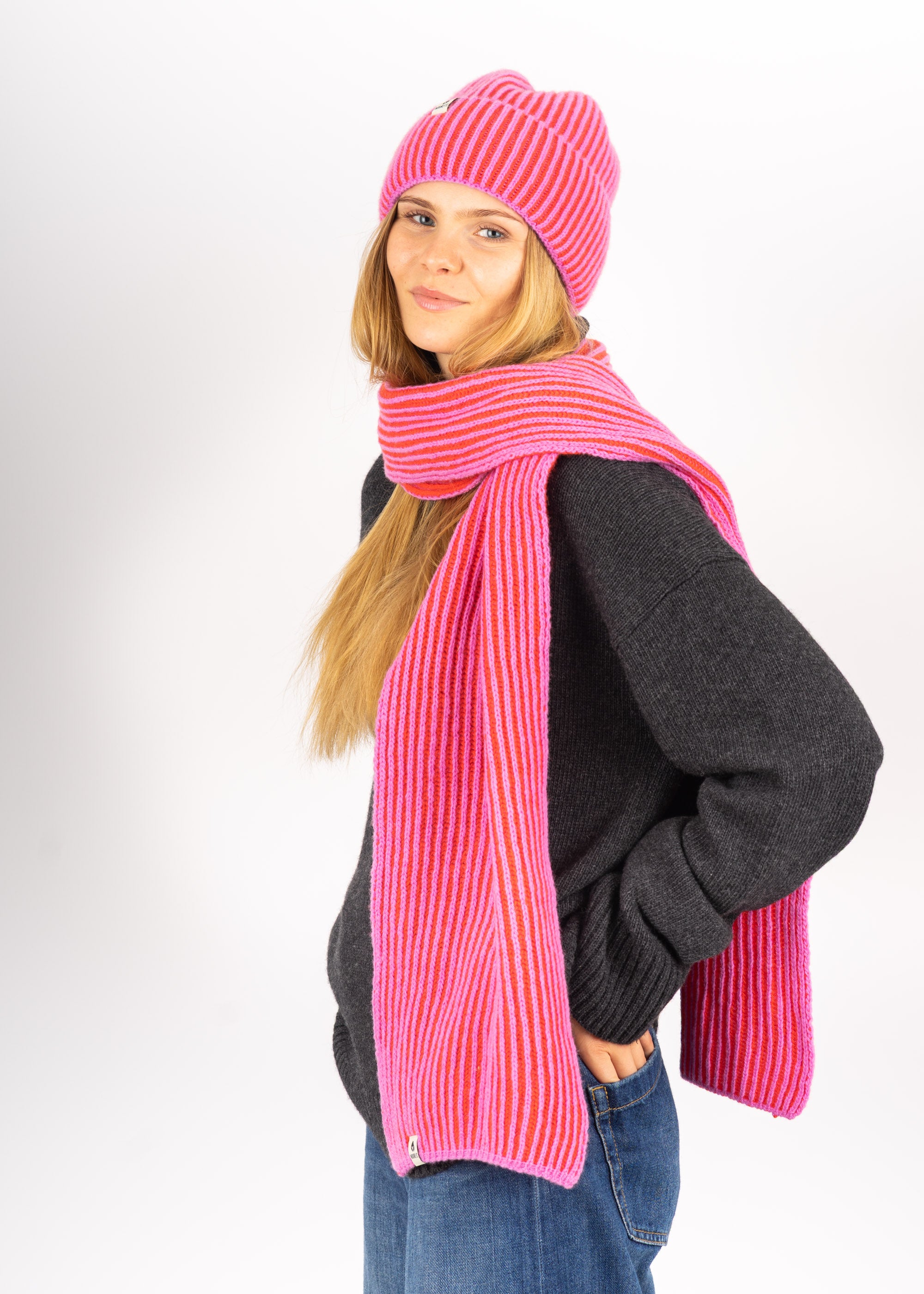Wenn Grau keine Option ist, kommt HEDWIG ins Spiel! Dieses Set aus Schal und Mütze bringt frische Farbe in die kalte Jahreszeit und sorgt für gute Laune, selbst wenn das Wetter mal nicht mitspielt. Das Farbdoppel Erdbeerquark/Chili ist mutig, fröhlich und einfach anders. Genau richtig, um Deinem Winteroutfit Persönlichkeit zu verleihen.