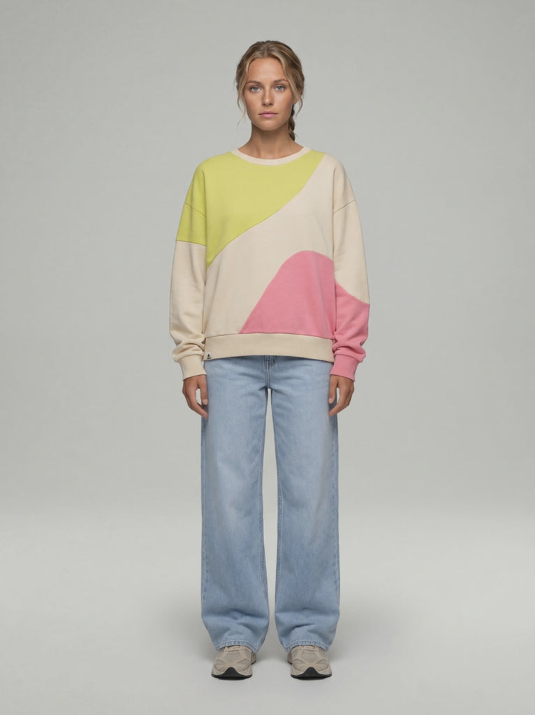 Der Sweater überzeugt mit seinem einzigartigen Farbspiel, das Leichtigkeit und Kreativität versprüht. Die harmonischen Farbfelder verleihen MUHMA einen modernen, künstlerischen Look und machen ihn zu einem echten Statement-Piece. Ob zur Jeans, über einem Rock oder zur Chino, dieser Sweater bringt Farbe und gute Laune in Deinen Alltag.