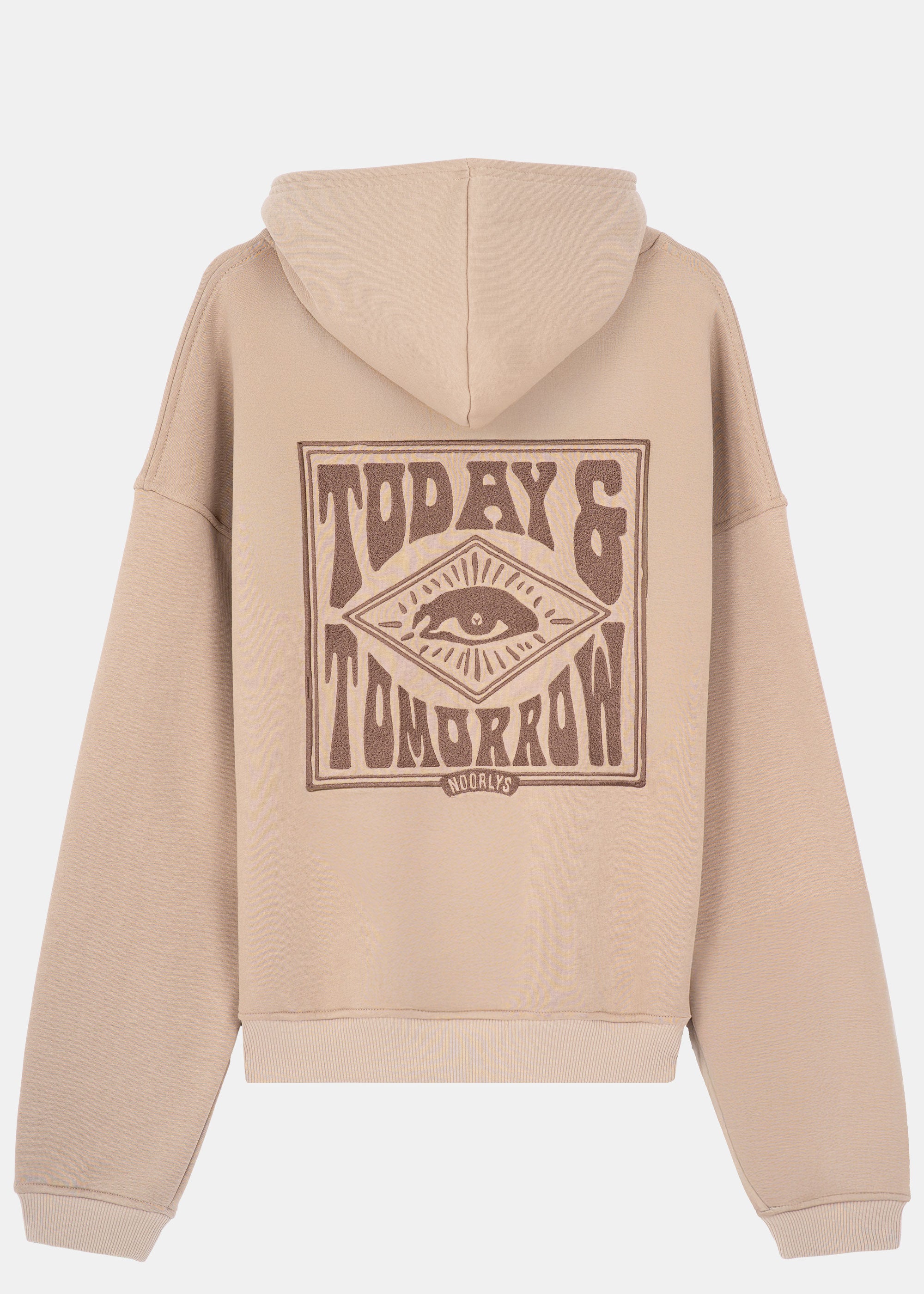 Der Hoodie OOG ist ein echtes Statement: Klar im Design, stark im Ausdruck. Auf der Rückseite trägt er einen großen, detailreichen Stick mit dem Schriftzug „TODAY & TOMORROW“ und einem Auge, das Dich daran erinnert, den Blick immer wieder zu weiten.